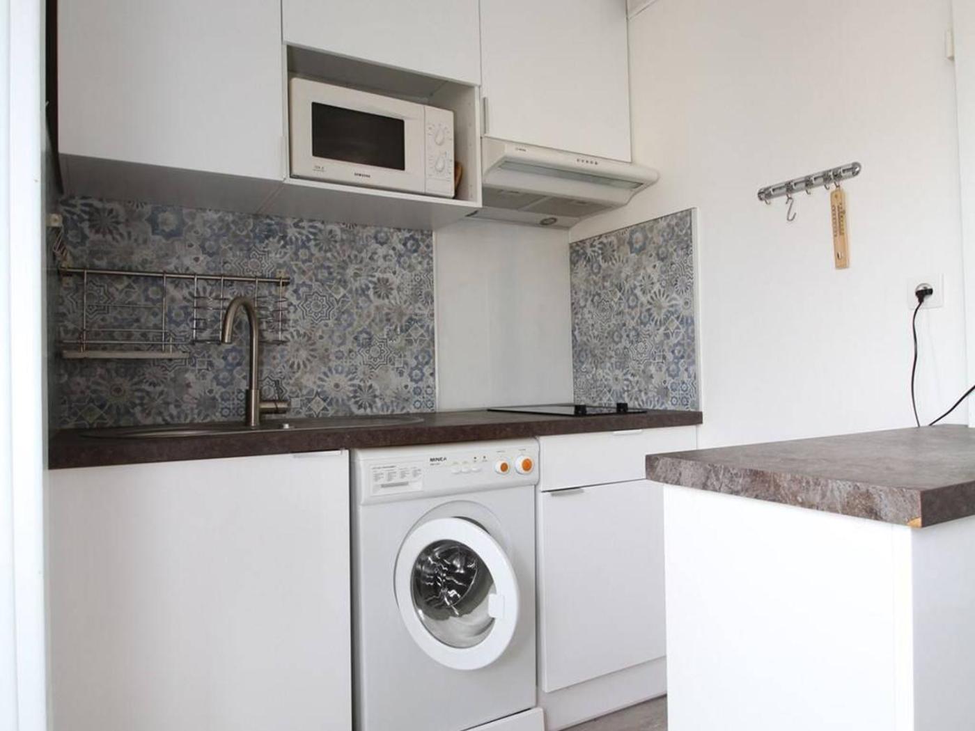 Studio. The well-equipped kitchen features a stovetop, a refrigerator, kitchenware and a microwave. The studio provides air conditioning, a washing machine, as well as a private bathroom featuring a shower and a hairdryer. The unit offers 1 bed.