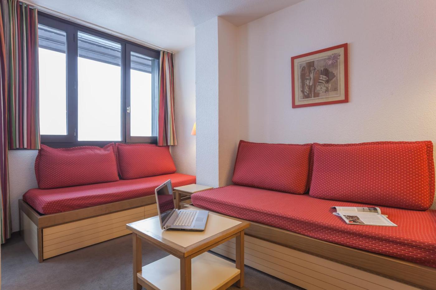 One-Bedroom Apartment (4 People). This apartment features a living area with two single sofa beds. There is one bedroom with a double bed. It has one independent bathroom with a bath or a shower. The fully equipped kitchenette opens on the living area. You are kindly requested to clean the kitchen area before departure. Some accommodation has a balcony. Separation of the living room and the bedroom by a mobile partition Orientation: North or South A pull-out bed (recommended for children) is available in the living room for an extra bed