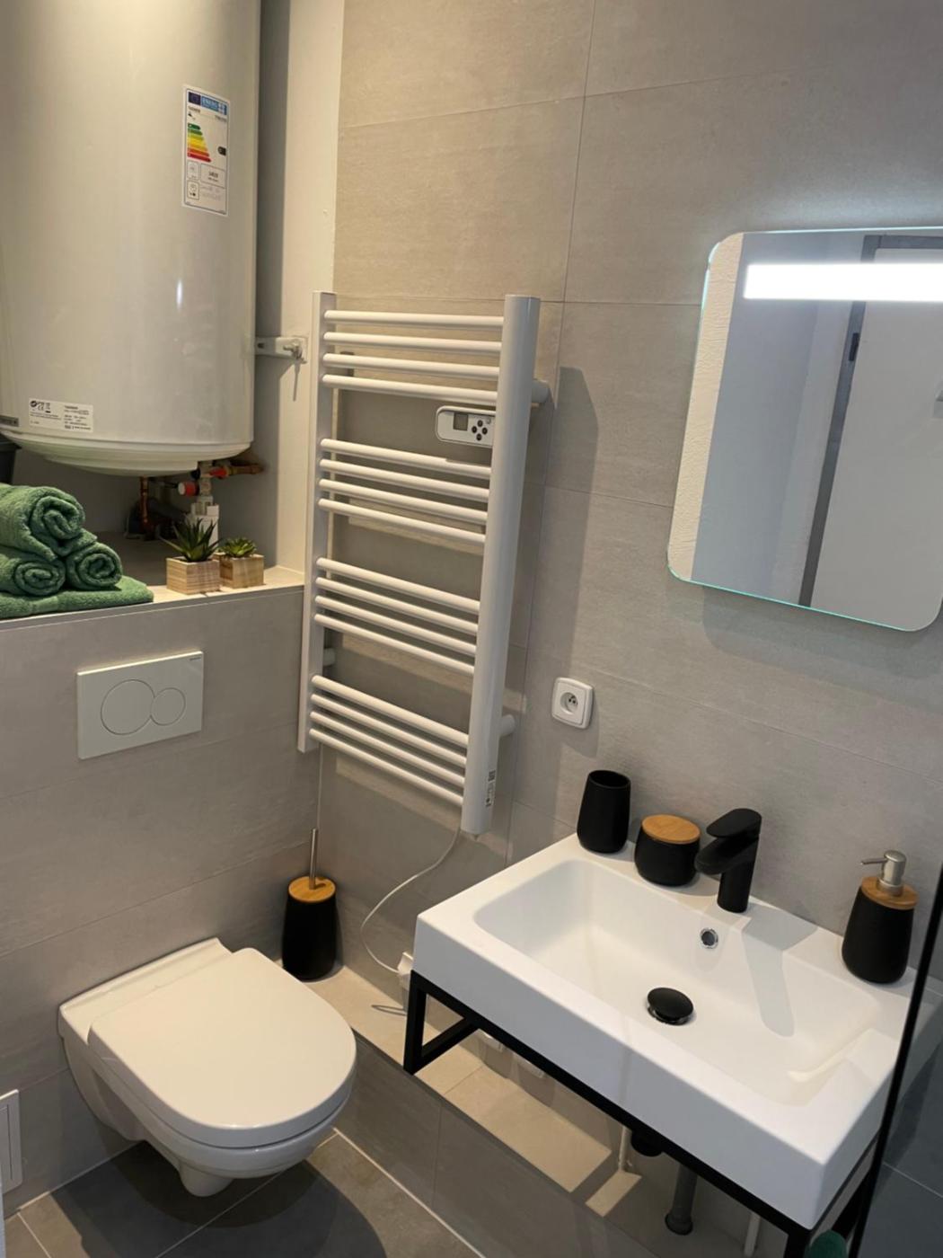One-Bedroom Apartment. The apartment has 1 bedroom and 1 bathroom with a shower and free toiletries. Meals can be prepared in the well-fitted kitchen, which features a stovetop, a refrigerator, kitchenware and an oven. The apartment features a flat-screen TV with cable channels, a washing machine, a tea and coffee maker, a seating area as well as city views. The unit has 1 bed.