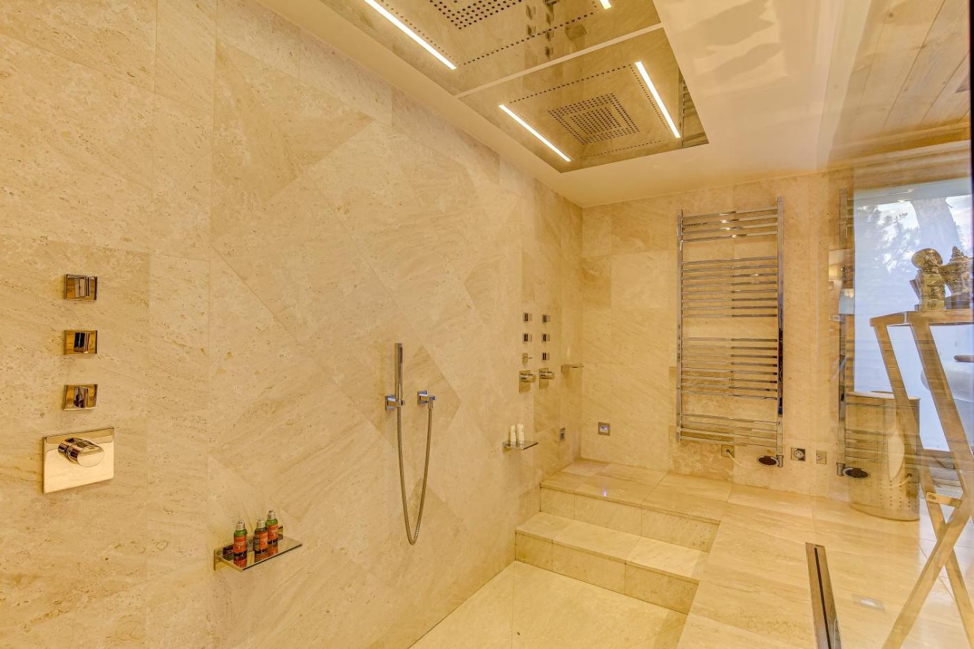 Chalet. Guests will have a special experience as this chalet offers a private pool, a hot tub and a sauna. Boasting a private entrance, this spacious chalet also includes 5 separate bedrooms and 7 bathrooms with a bath and a hairdryer. Guests will find a stovetop, a refrigerator, a dishwasher and kitchenware in the fully equipped kitchen. The chalet also features a barbecue. Among the room amenities are a washing machine, a tea and coffee maker, a wardrobe as well as a patio and mountain views. The unit has 7 beds.