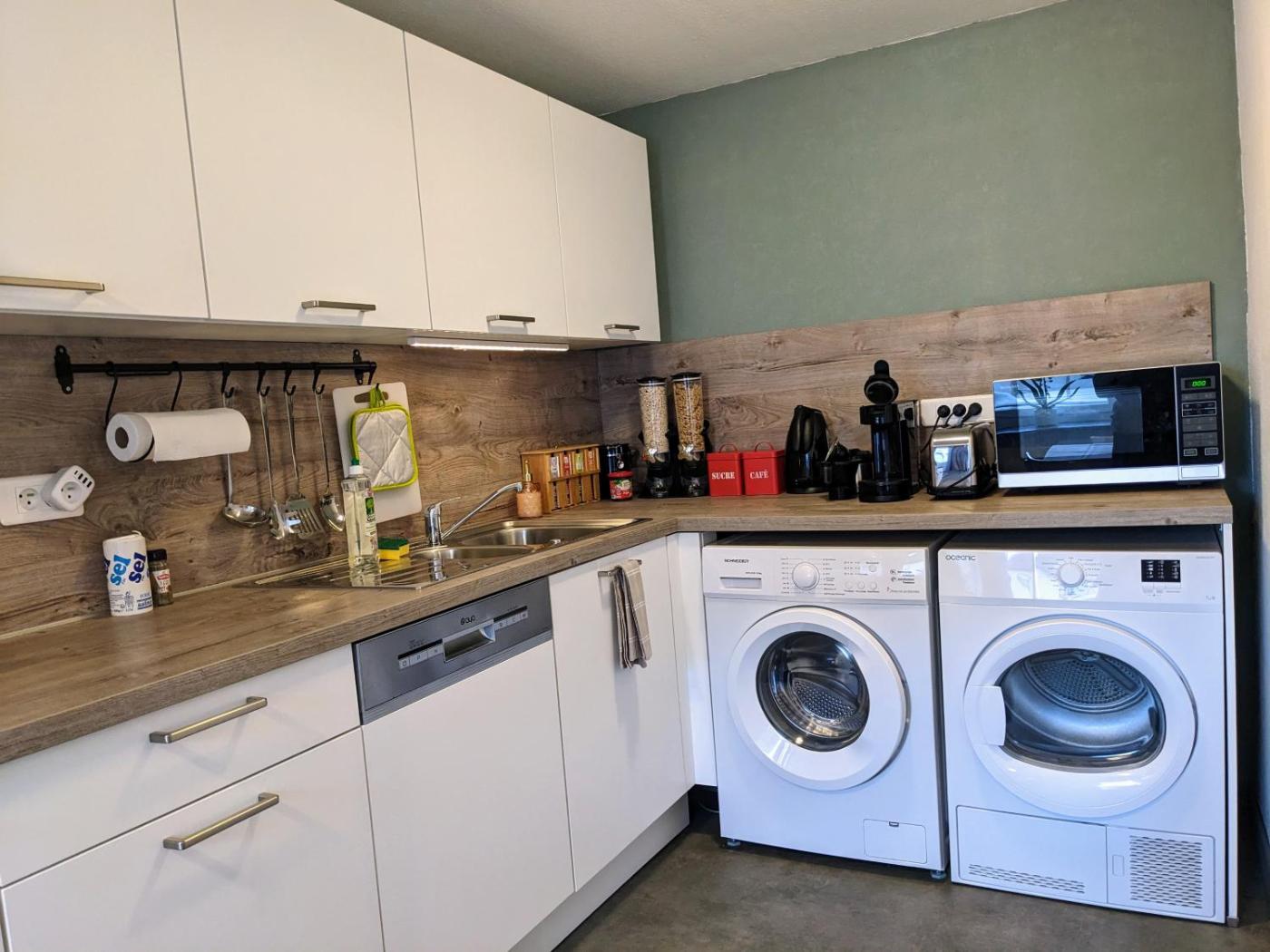 One-Bedroom Apartment. Featuring a private entrance, this apartment is comprised of 1 living room, 1 separate bedroom and 1 bathroom with a shower and a hairdryer. The fully equipped kitchen features a stovetop, a refrigerator, a dishwasher and kitchenware. The apartment offers a washing machine, a coffee machine, a seating area, tumble dryer, as well as a flat-screen TV. The unit offers 2 beds.