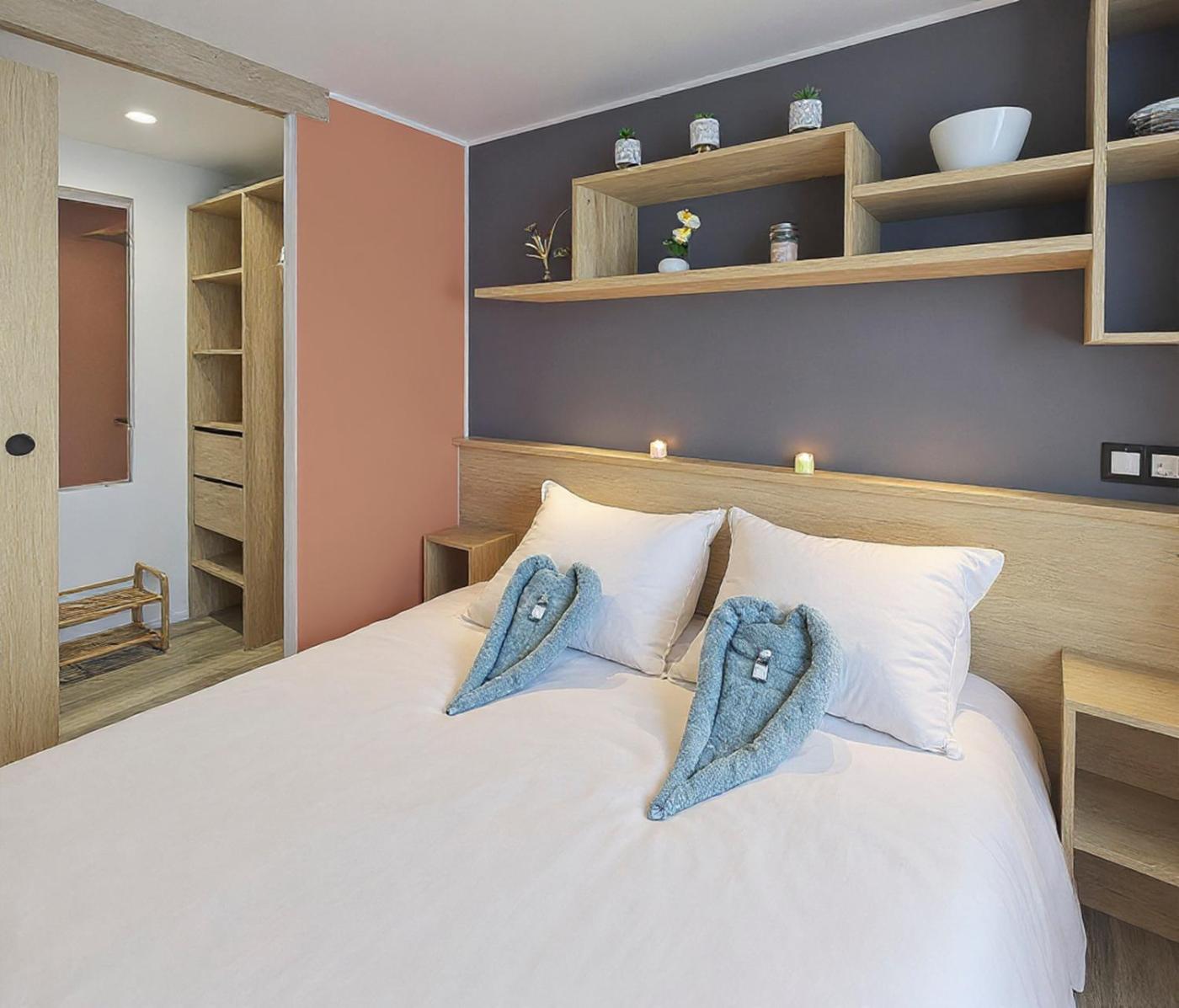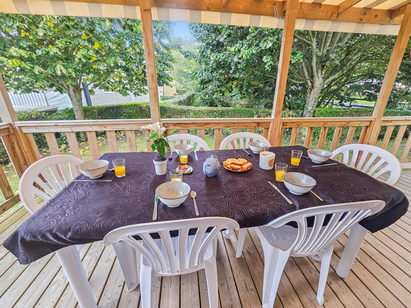 Mobile Home. The hot tub is a top feature of this mobile home. This mobile home comes with 1 living room, 2 separate bedrooms and 1 bathroom with a shower and a hairdryer. Guests will find a stovetop, a refrigerator, kitchenware and an oven in the kitchen. The mobile home also includes a barbecue. This mobile home has a washing machine, a tea and coffee maker, a flat-screen TV and a terrace. The unit has 4 beds.