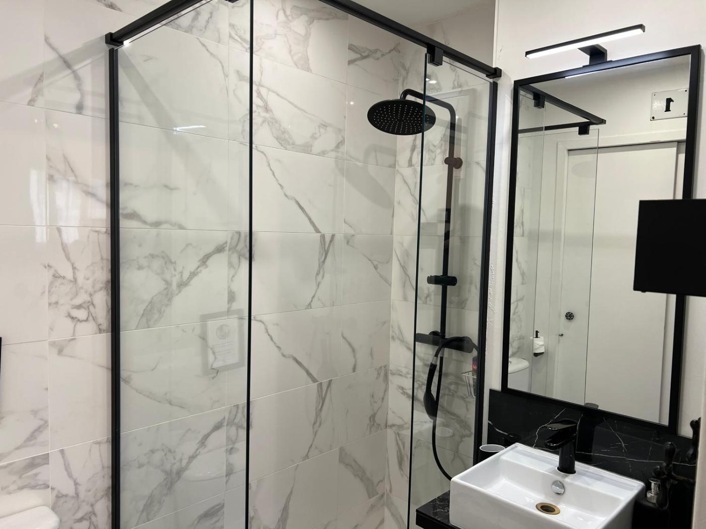 One-Bedroom Apartment. This apartment comes with 1 bedroom, a kitchen and 1 bathroom with a walk-in shower and a hairdryer. In the well-fitted kitchen, guests will find a stovetop, a refrigerator, kitchenware and a microwave. The apartment features a washing machine, a coffee machine, a dining area, a flat-screen TV, as well as ancourtyard view. The unit has 1 bed.