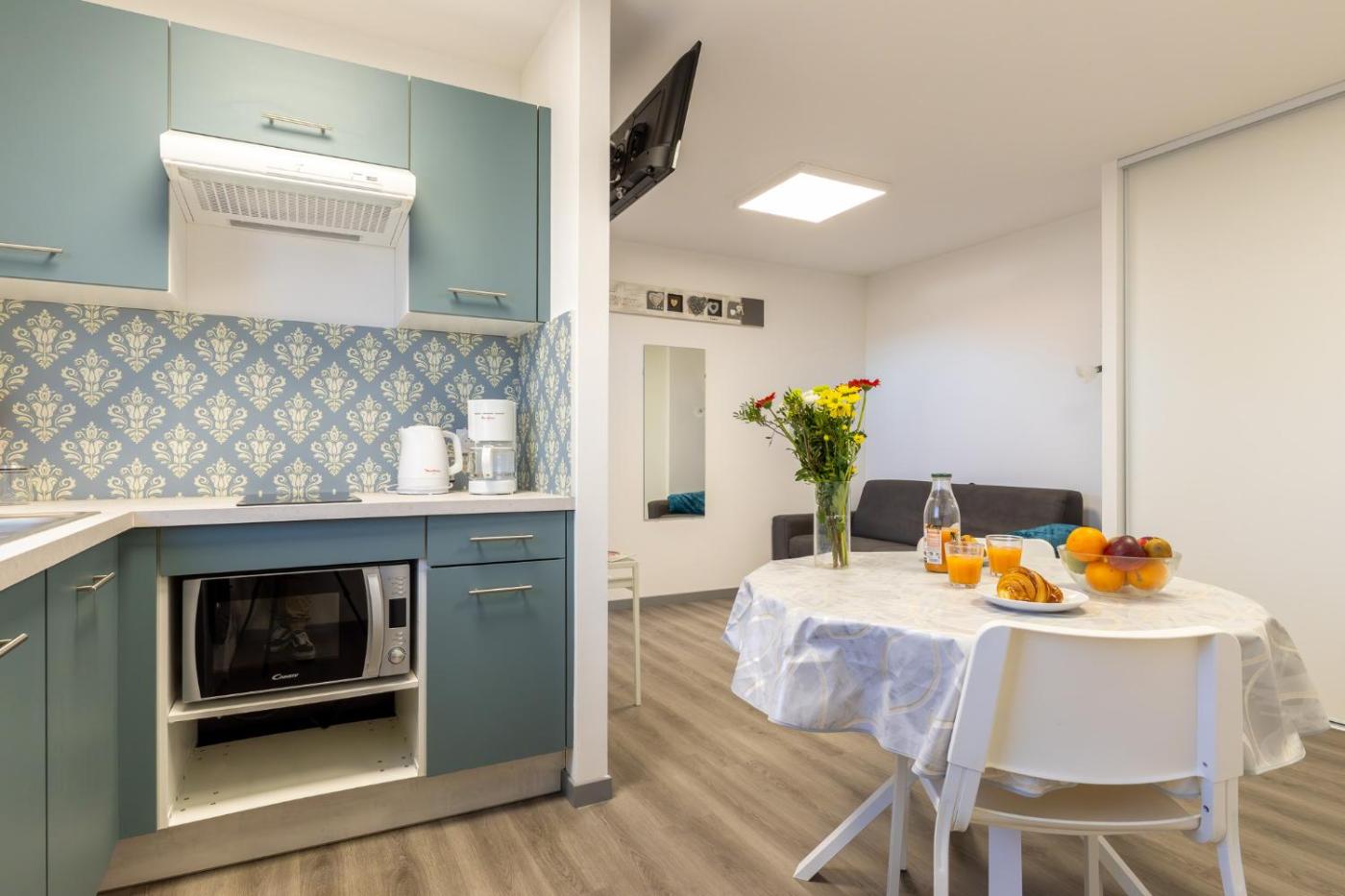 Studio Apartment. The apartment features a private bathroom, air conditioning, a washing machine, as well as a seating area with a flat-screen TV. Guests can make meals in the kitchen that is fitted with a stovetop, a refrigerator, kitchenware and an oven. The apartment offers a tea and coffee maker, a dining area, tumble dryer, heating, as well as a TV. The unit offers 1 bed.