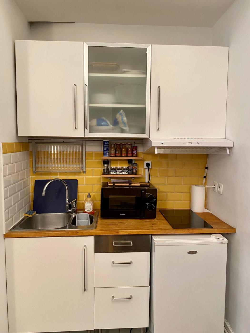 One-Bedroom Apartment. Boasting a private entrance, this apartment comes with 1 living room, 1 separate bedroom and 1 bathroom with a shower and a hairdryer. The well-fitted kitchen has a stovetop, a refrigerator, kitchenware and a microwave. The apartment features parquet floors, a seating area with a flat-screen TV, a washing machine, a coffee machine as well as ancourtyard view. The unit has 2 beds.