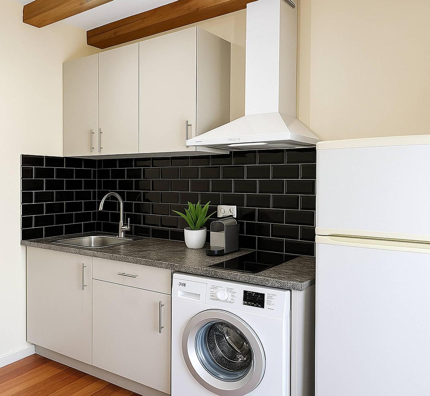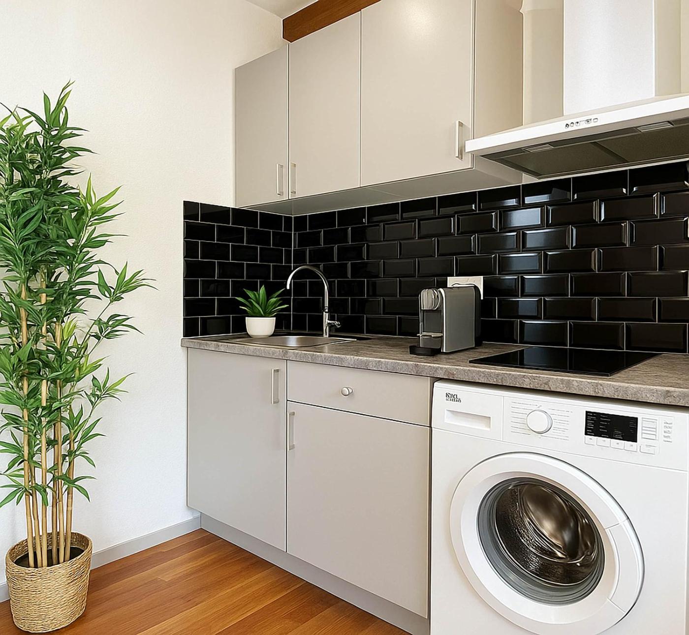 Apartment. This apartment consists of 1 living room, 1 separate bedroom and 1 bathroom with a hairdryer. In the well-fitted kitchen, guests will find a stovetop, a refrigerator, kitchenware and a microwave. The apartment provides a washing machine, a tea and coffee maker, a high chair for children, heating and a TV with cable channels. The unit offers 2 beds.