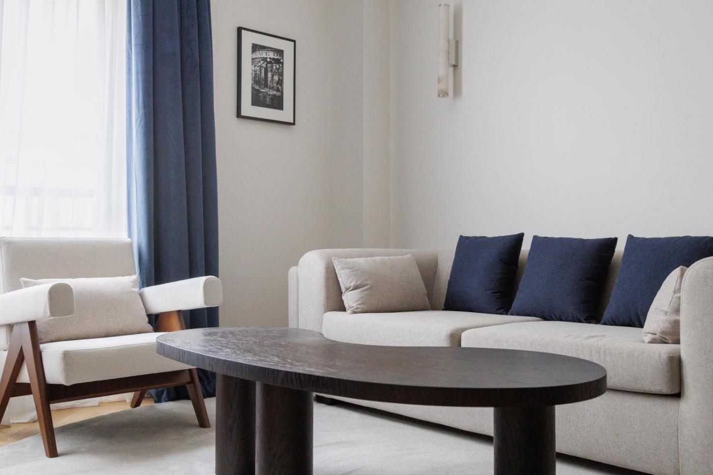 Deluxe One-Bedroom Apartment. This apartment features 1 living room, 1 separate bedroom and 1 bathroom with a shower and free toiletries. Meals can be prepared in the well-fitted kitchen, which has a stovetop, a refrigerator, a dishwasher and kitchenware. The air-conditioned apartment features a flat-screen TV with streaming services, a washing machine, soundproof walls, a tea and coffee maker as well as ancourtyard view. The unit has 2 beds.