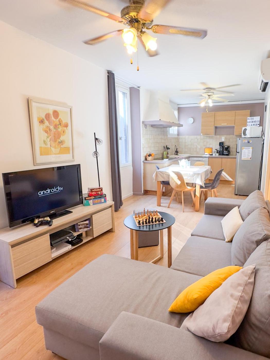 T3 clim, TV, ART, familial, 50m du port, cuisine équipée et jeux de société