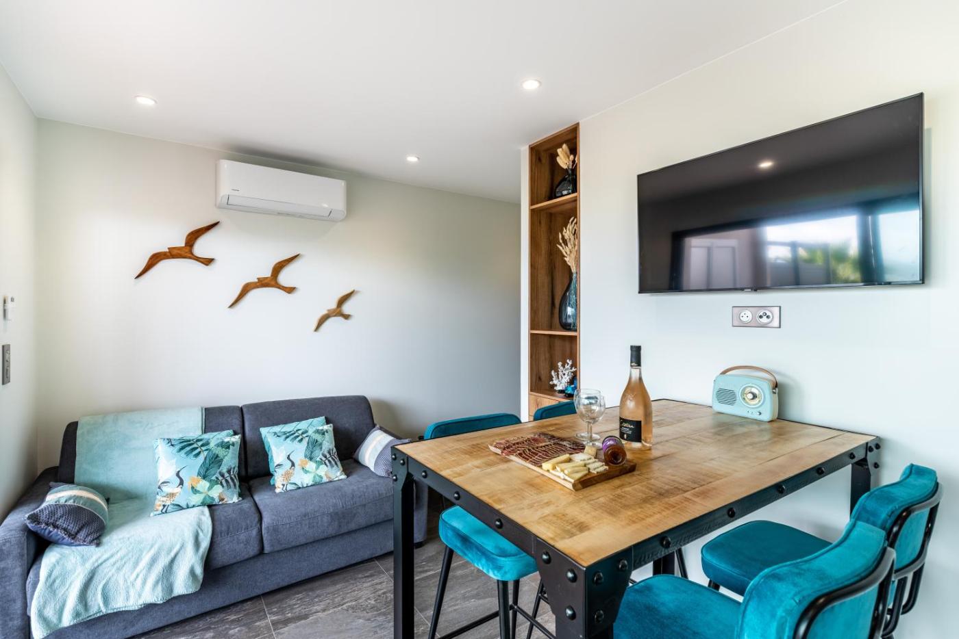 One-Bedroom Apartment. Guests will find a refrigerator, a dishwasher, kitchenware and an oven in the kitchen. The apartment also has a barbecue. The apartment offers air conditioning, a washing machine, a terrace with sea views as well as a private bathroom featuring a shower. The unit offers 2 beds.