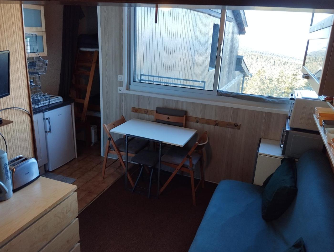 Studio with Mountain View. The studio offers a sofa and a carpeted floor, as well as a private bathroom featuring a hairdryer. The well-fitted kitchenette features a stovetop, a refrigerator, kitchenware and an oven. The studio provides a dining area, a wardrobe, an electric kettle, a flat-screen TV, as well as mountain views. The unit offers 3 beds.