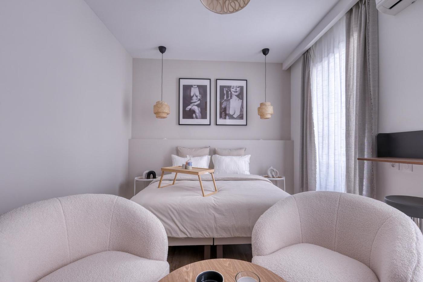 One-Bedroom Apartment. Featuring a private entrance, this air-conditioned apartment comprises a kitchenette, 1 bedroom and 1 bathroom with a walk-in shower and a hairdryer. In the fully equipped kitchenette, guests will find a stovetop, a refrigerator, kitchenware and a microwave. The apartment provides a tea and coffee maker, a seating area, a dining area, a flat-screen TV with streaming services, as well as city views. The unit offers 1 bed.